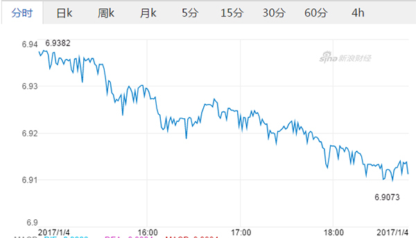 2016年开年时的股汇双杀,到了2017年反转成了股汇双涨。 1月4日,在离岸市场上,人民币对美元汇率上演大反击:人民币从日内最低的6.9694一路升值,接连升破6.96、6.95、6.94、6.93和6.92关口,19时左右最高升至6.9122,随离岸人民币再接再厉,随后不到半个小时又升破了6.91和6.90两大关口,最高至6.8958,日内振幅超过700个基点。